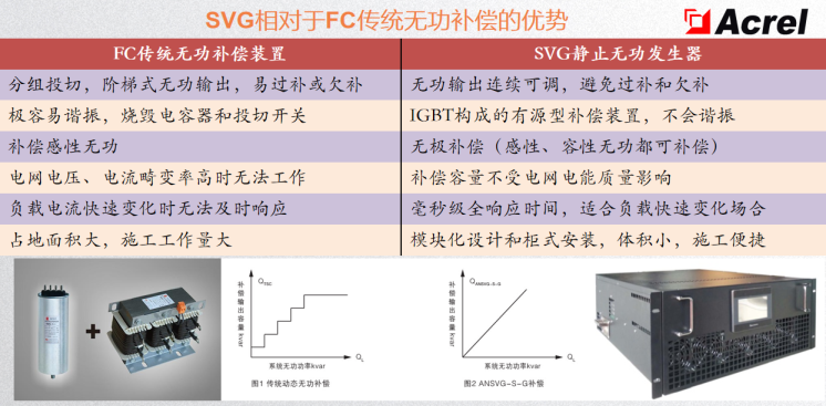 ① Linear compensation of reactive power with a compensation step smaller than 1KVar;② Polarity-free compensation, which can output both capacitive and inductive reactive power;③ Fast response time, with a total response time less than 5ms.