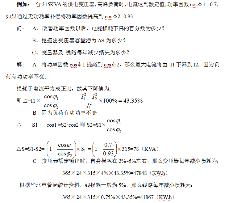 หากมีกําลังการผลิตไม่เพียงพอในหม้อแปลงและสายสามารถใช้วิธีการติดตั้งอุปกรณ์ชดเชยพลังงานปฏิกิริยาการติดตั้งอุปกรณ์ชดเชยพลังงานปฏิกิริยาสามารถปรับสมดุลพลังงานปฏิกิริยาในท้องถิ่นลดกระแสไฟที่ไหลผ่านสายและหม้อแปลงชะลอความเร็วในการชราของลวดและฉนวนกันความร้อนหม้อแปลงและยืดอายุการใช้งานในเวลาเดียวกันก็สามารถปลดปล่อยกําลังการผลิตของหม้อแปลงและสายเพิ่มความสามารถในการรับน้ําหนักตัวอย่างเช่นด้วยหม้อแปลง 100KVA ปัจจุบันทํางานที่โหลด 85% ด้วย COSΦ 0.7 การติดตั้งอุปกรณ์ชดเชยพลังงานปฏิกิริยาสามารถเพิ่มความสามารถในการรับน้ําหนักของหม้อแปลงได้ 30%ผู้ใช้สามารถเพิ่มภาระได้โดยไม่ต้องขยายกําลังการผลิตเพื่ออํานวยความสะดวกในการขยายการผลิตต่อไป