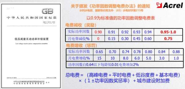 ตามประกาศ เรื่อง "วิธีการปรับค่าไฟฟ้าตามปัจจัยกําลัง" ไม่ยากที่จะพบว่า กฎการปรับปัจจัยกําลังใช้ค่า 0.9 เป็นค่ามาตรฐานโดยการเพิ่มปัจจัยพลังงานผู้ใช้สามารถลดค่าไฟฟ้าทั้งหมดของพวกเขานอกจากนี้ ผู้ใช้บริการจัดจําหน่ายที่มีค่ากําลังไฟสูงกว่า 0.9 อาจได้รับรางวัลจากบริษัทไฟฟ้าสําหรับการปรับค่ากําลังไฟผ่านการชดเชยที่เหมาะสมปัจจัยพลังงานที่จุดวัดสามารถปรับให้เป็นไปตามมาตรฐานระดับชาติซึ่งสามารถกําจัดค่าใช้จ่ายปัจจัยพลังงานและลดค่าใช้จ่ายไฟฟ้าสําหรับผู้ใช้พลังงานได้อย่างมีนัยสําคัญ