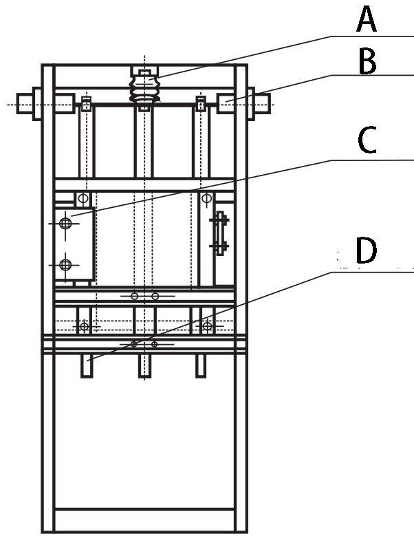 ![]() | รูปที่ 3 A: ฟิวส์ (แยกประตูมีด) B: กลไกควบคุมกระสุน C: โหลดสวิตช์ D: หม้อแปลงปัจจุบัน |
